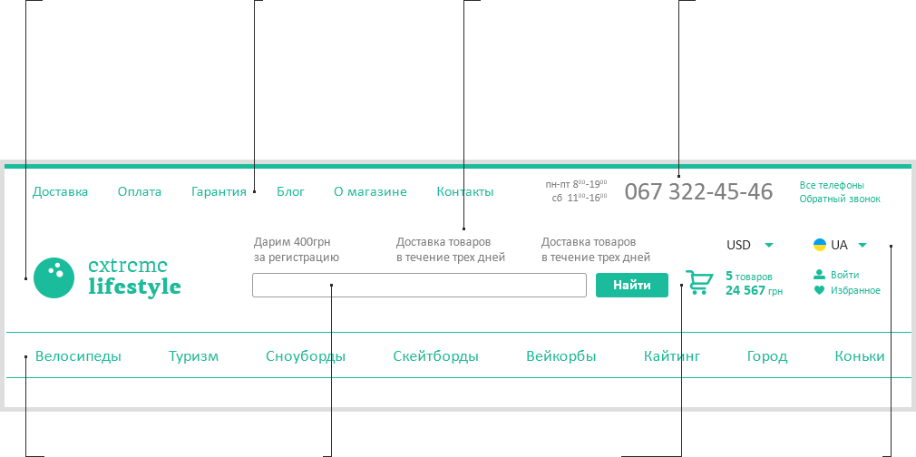 Product catalogue menu is the most important navigation item, that’s why it’s placed in the foreground.