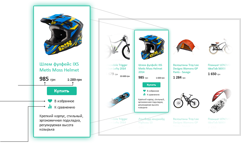 As visitor moves the mouse over the product in any page, it will show a brief product description. Also this feature give the option to add the product to the cart or to favorites or to the compare list